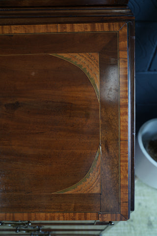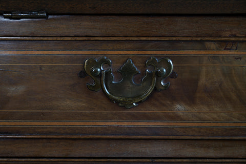The mahogany has developed a deep, mellow tone over centuries of polishing and care. The satin sheen enhances its rich grain and natural variations, offering depth and warmth that only genuine age can provide. -