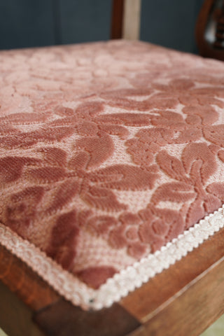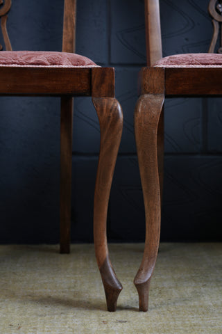 A refined set of four Victorian dining chairs, masterfully crafted from walnut and beautifully upholstered in a soft light salmon fabric. With their graceful silhouettes, carved details, and warm tones, these chairs capture the timeless sophistication of 19th-century English design.