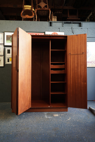 The Interior Stylist's Note: Vintage wardrobes bring a warmth that modern fitted cupboards simply cannot match. This piece works brilliantly in a master bedroom to soften the acoustics, or even in a generous hallway as dedicated coat storage. Pair it with other Fresco pieces (chest of drawers, bedside tables) for a cohesive 'hotel suite' aesthetic, or let it stand alone against a dark charcoal or sage green wall to make the teak pop.