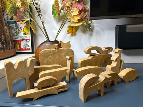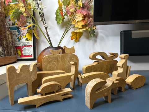 Precision-cut from a single block of wood, each animal retains the organic continuity of the original piece. Mari’s clever negative/positive carving ensures that every element fits together seamlessly, celebrating craftsmanship, design logic, and timeless durability.