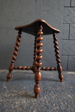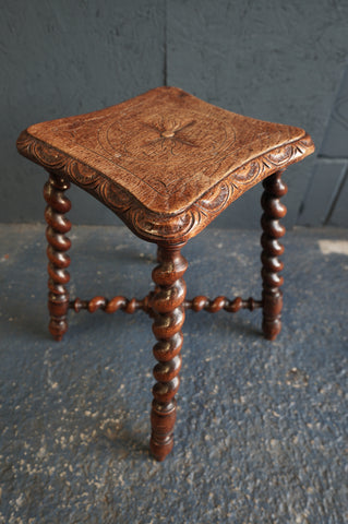 Jacobean Revival Carved Oak Barley Twist Stool / Occasional Table – c.1920s