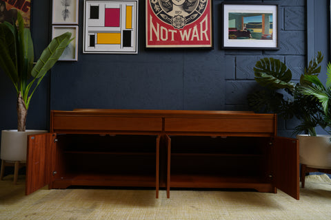 A stunning William Lawrence teak sideboard, showcasing the best of British mid-century design. With its clean lines, fine joinery, and balanced proportions, this piece perfectly blends functionality with timeless elegance — a true statement of understated sophistication.